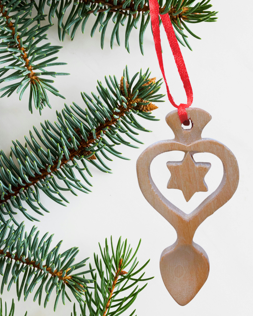 Addurn Nadolig Llwy Garu Pren Golau - Seren
