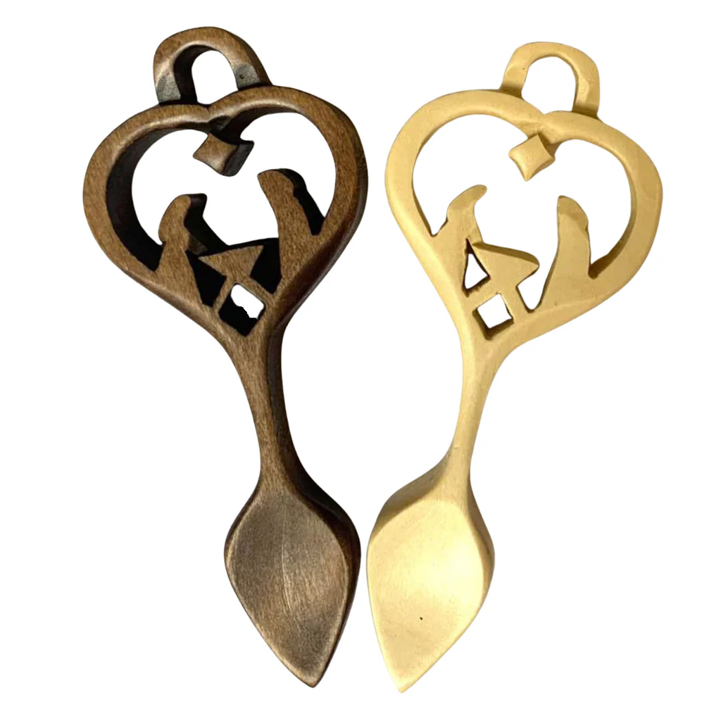 Llwy garu arbennig i ddathlu'r Nadolig. Mae ffigurau cerfiedig Mair a Joseff yn syllu ar y baban Iesu yn y preseb o dan Seren Dafydd. Mae'r llwy hon yn anrheg Nadolig unigryw, sy'n portreadu gwir ystyr y Nadolig.