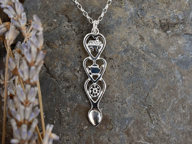 Mae'r Llwy Serch hon yn cynnyws delweddau traddodiadol sydd i'w gweld ar lawer o Lwyau hanesyddol. Mae cartref, tebot ac olwyn yn cynrychioli aelwyd glud, a bywyd dedwydd a ffodus.