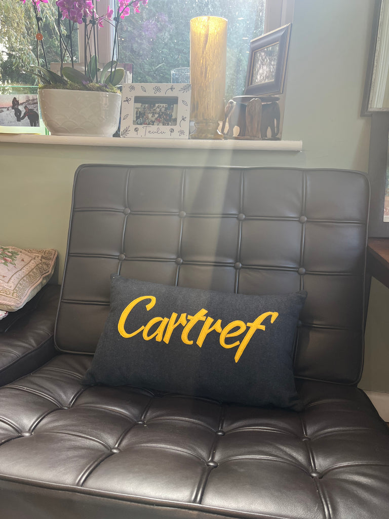 These have a soft feel and a wool touch feel the perfect gift for someone special with 'Cartref' (home in Welsh) in Mustard.