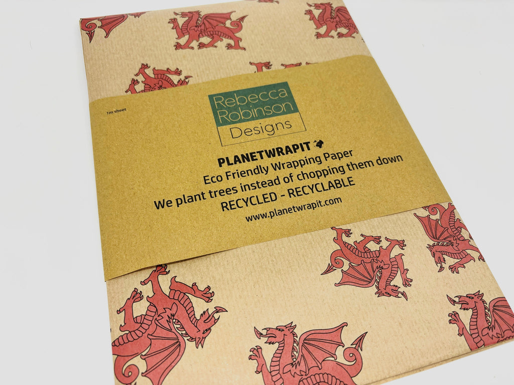 Welsh Dragons Gift Wrap - Recycled Kraft Wrapping Paper
